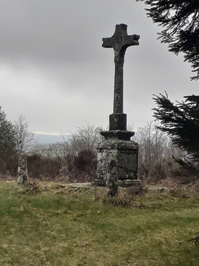 Sur une plateforme à deux gradins, une croix de pierre dressée sur un socle s’élève à deux mètres cinquante environ au-dessus du sol. Aux coins de la plateforme quatre aiguilles de pierre de moins d’un mètre de haut sont plantées, dont deux surmontées d’une croix de fer. On est surpris de rencontrer sur ce sommet désert un tel monument qui, pour modeste qu’il soit, n’a pas été élevé sans un souci de recherche de beau. Cette recherche se manifeste par le travail du socle, les pans coupés de la hampe de la croix et la façon des croisillons (croix ancrée).